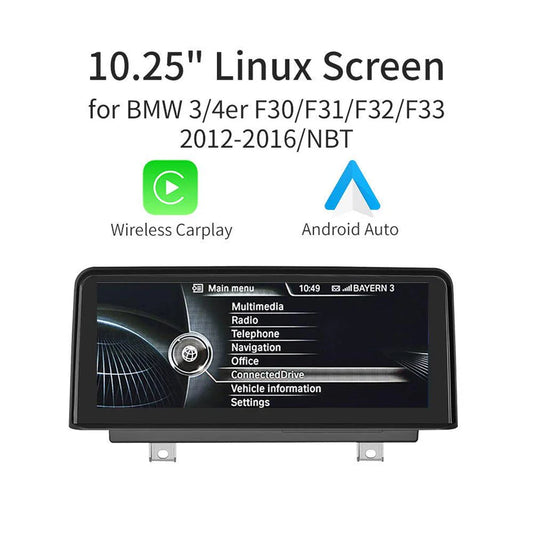 BMW F30 F31 F32 F33 F34 F36 NBT 10.25” Wireless CarPlay Android Auto Screen